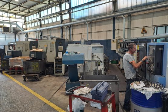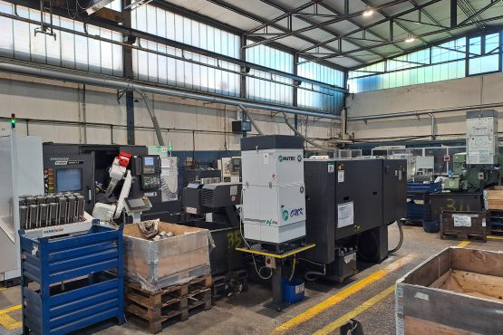 Il reparto di tornitura è strutturato in una zona dedicata alla lavorazione da barra ed una alla lavorazione presidiata. In quest’ultima da qualche anno abbiamo automatizzato i processi su alcune macchine inserendo due robot che gestiscono il carico e scarico pezzi.